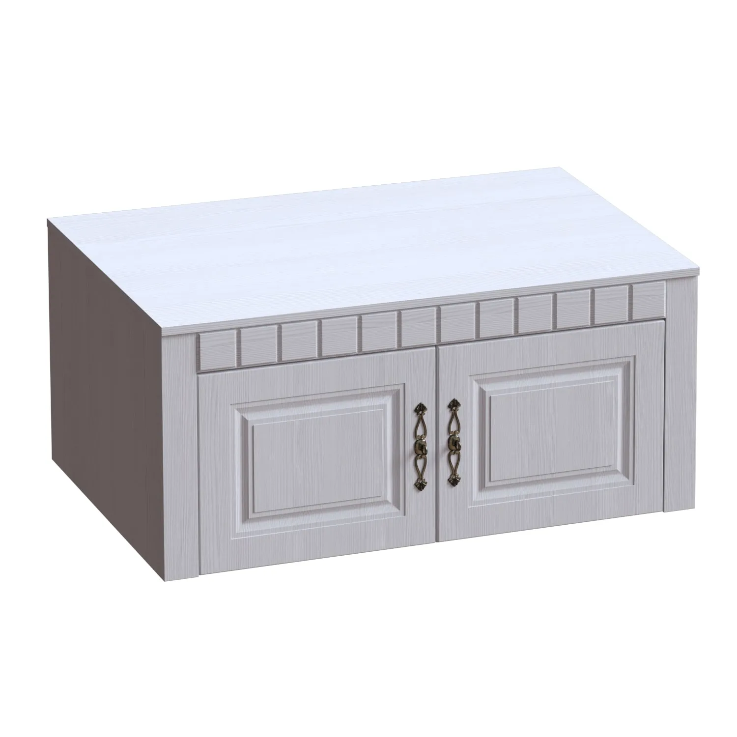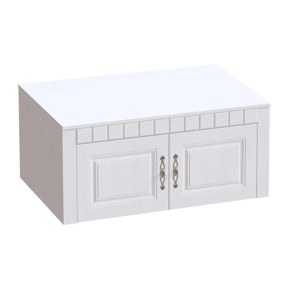 Антресоль двухдверная - глубина 590 мм, ширина 1070 мм, высота 480 мм. За распашными дверьми расположена ниша для вещей. Антресоль ставится на двухдверный шкаф и крепится к нему межсекционными стяжками.