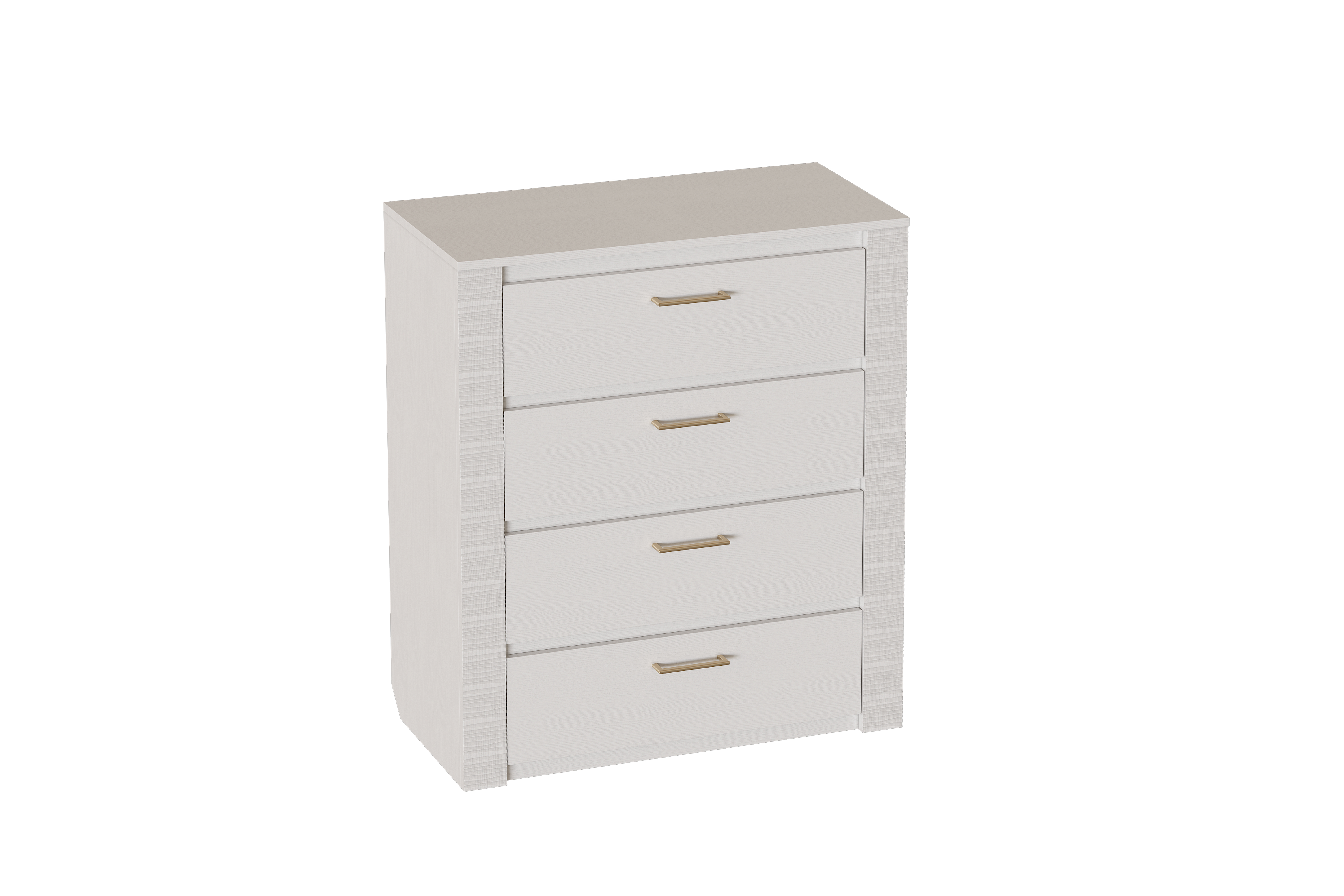Комод оснащен четырьмя выдвижными ящиками на роликовых направляющих. Под столешницей имеется стеклянная панель (5 мм), предназначенная для установки светильника. Комплект подсветки (светильник и блок питания) приобретается отдельно. Блок питания рассчитан на подключение шести светильников.