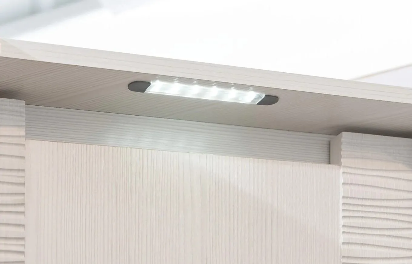 Отличительная часть серии Элана - вертикальные рифленые накладки на фасаде шкафа.