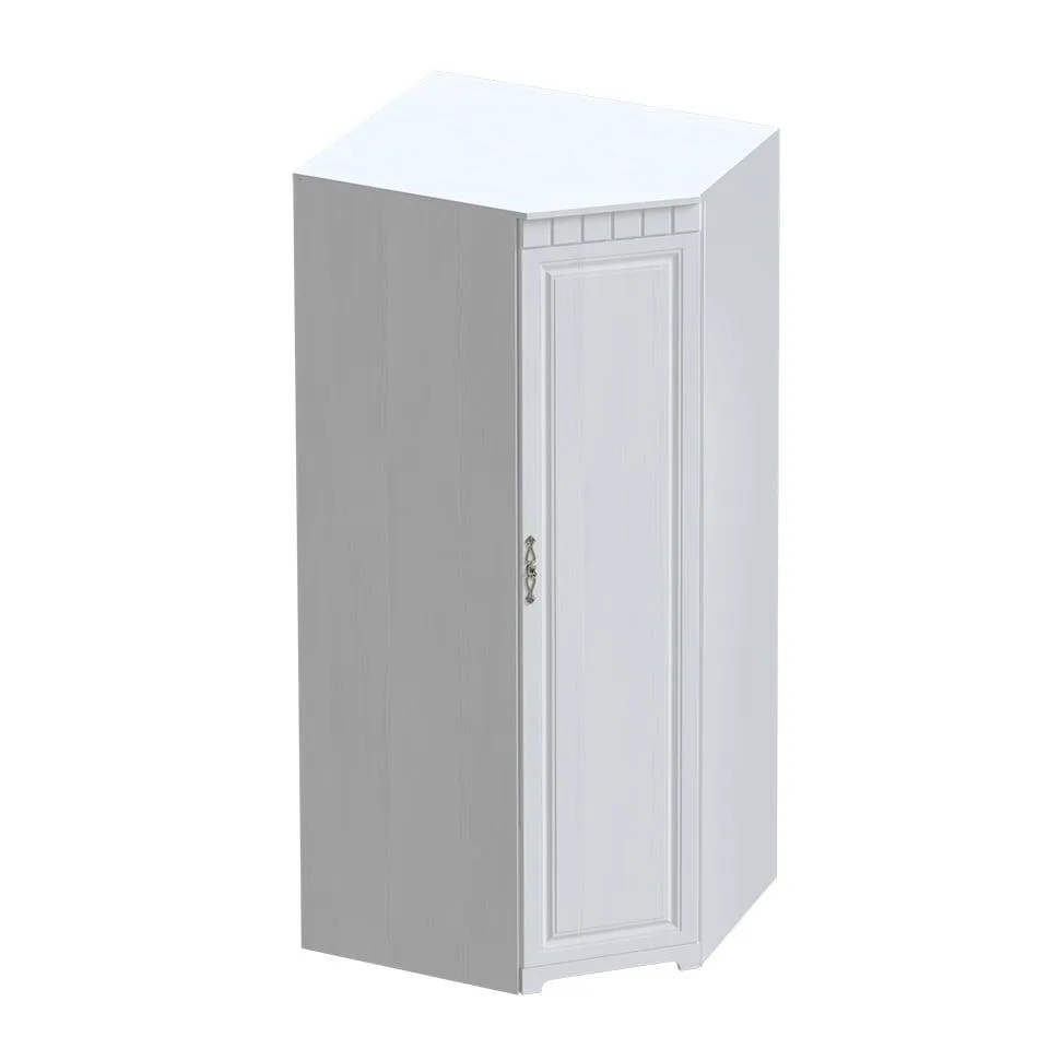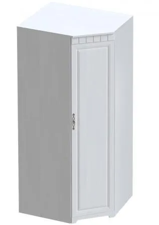 В угловом шкафу за распашной дверью расположены платяное отделение со стальной штангой и полкой сверху, и отделение с полками в количестве 4 шт. Дверь монтируется на любую сторону шкафа.