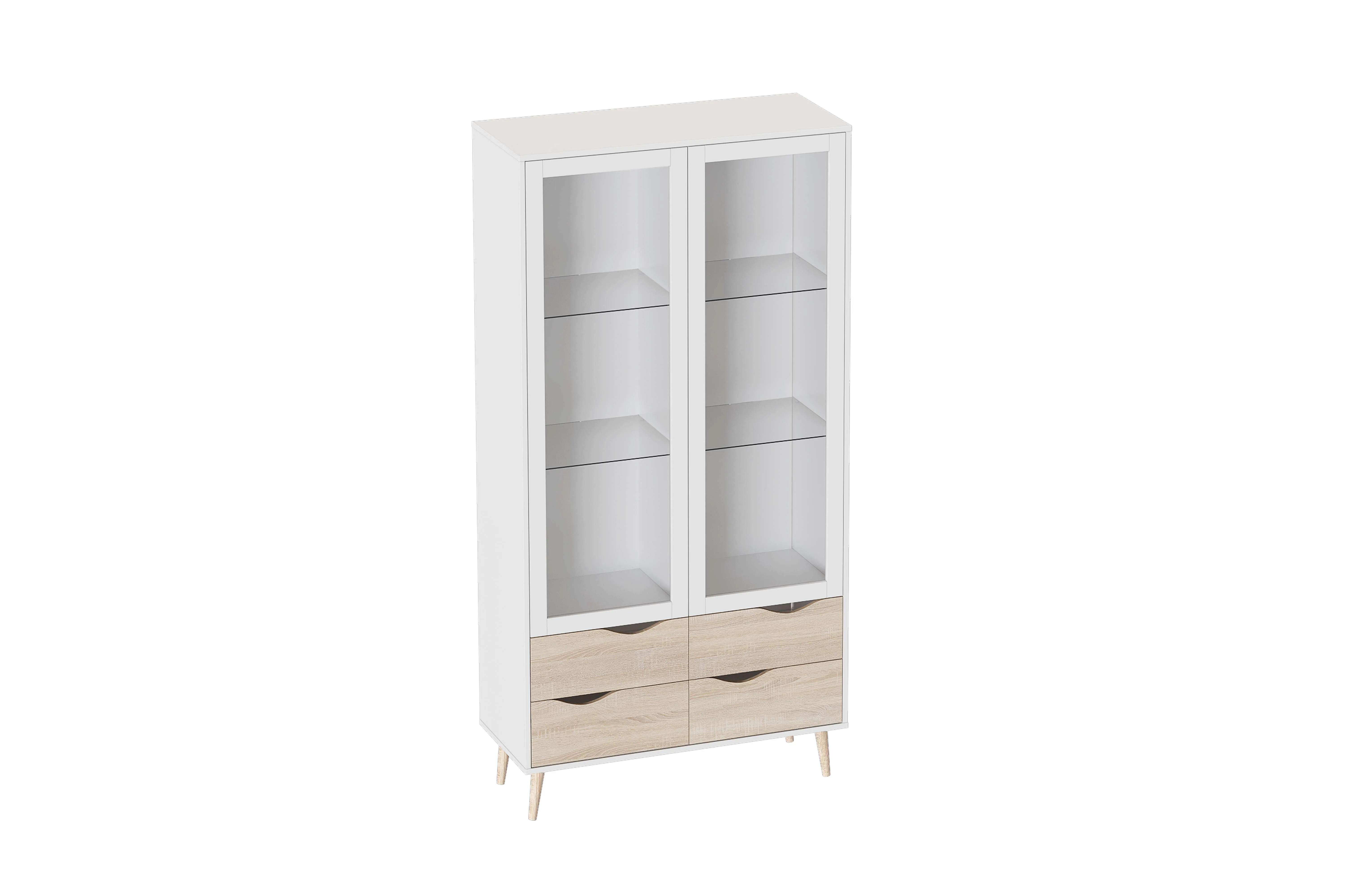 Серия «Соната» отличается простотой и натуральностью, выполнена в естественных тонах. В дизайне отчетливо улавливаются отсылки к скандинавской эстетике: чистые линии корпуса, использование белого цвета в отделке фасадов, расставленные в стороны высокие стильные опоры, выполненные из массива березы.
