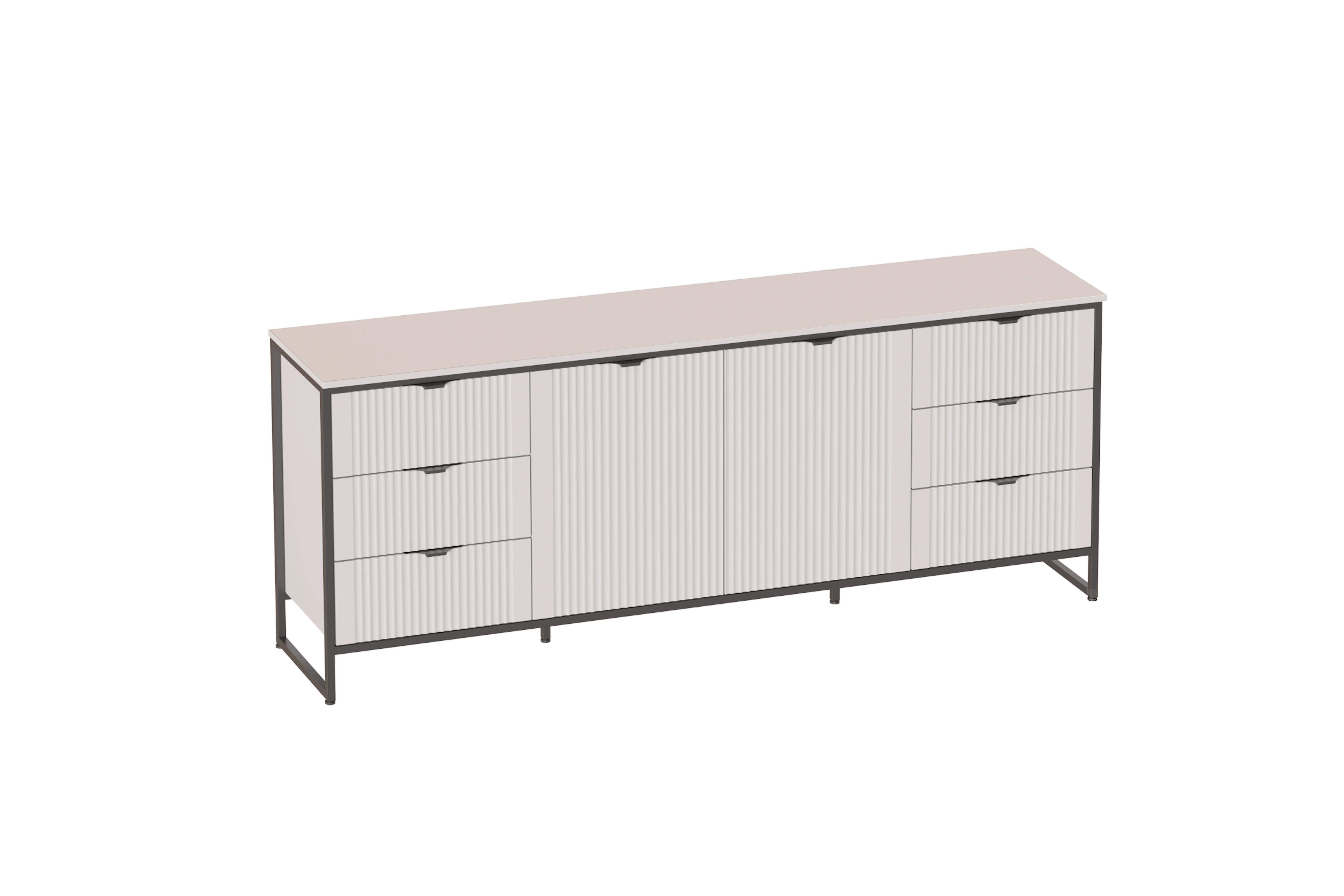 Дизайн коллекции гармонирует со стилем минимализм и лофт. Корпус изделий выполнен из качественного ЛДСП 16 мм, фасады из МДФ 16 мм. Толщина металлических опор - 20 мм.