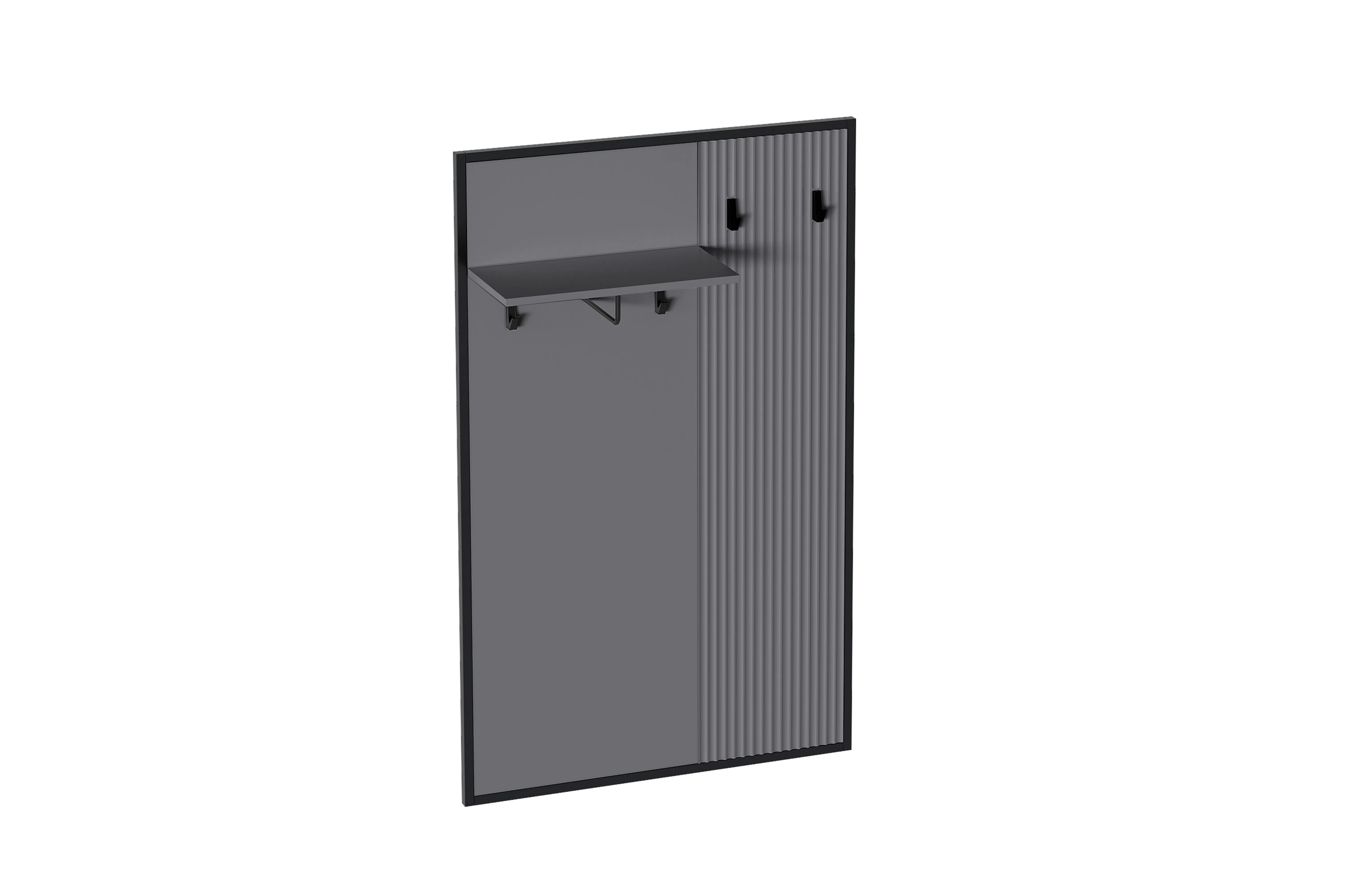 Вешалка «Нора» имеет 4 крючка. Под полкой установлен кронштейн для навешивания плечиков. Конструктивные особенности вешалки предусматривают ее сборку в правом или левом исполнении.